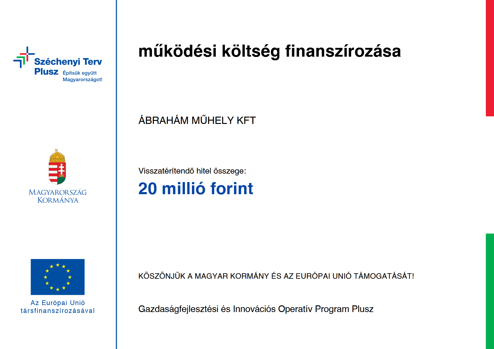 Az Ábrahám Műhely Kft. a KKV Technológia Plusz Hitelprogram