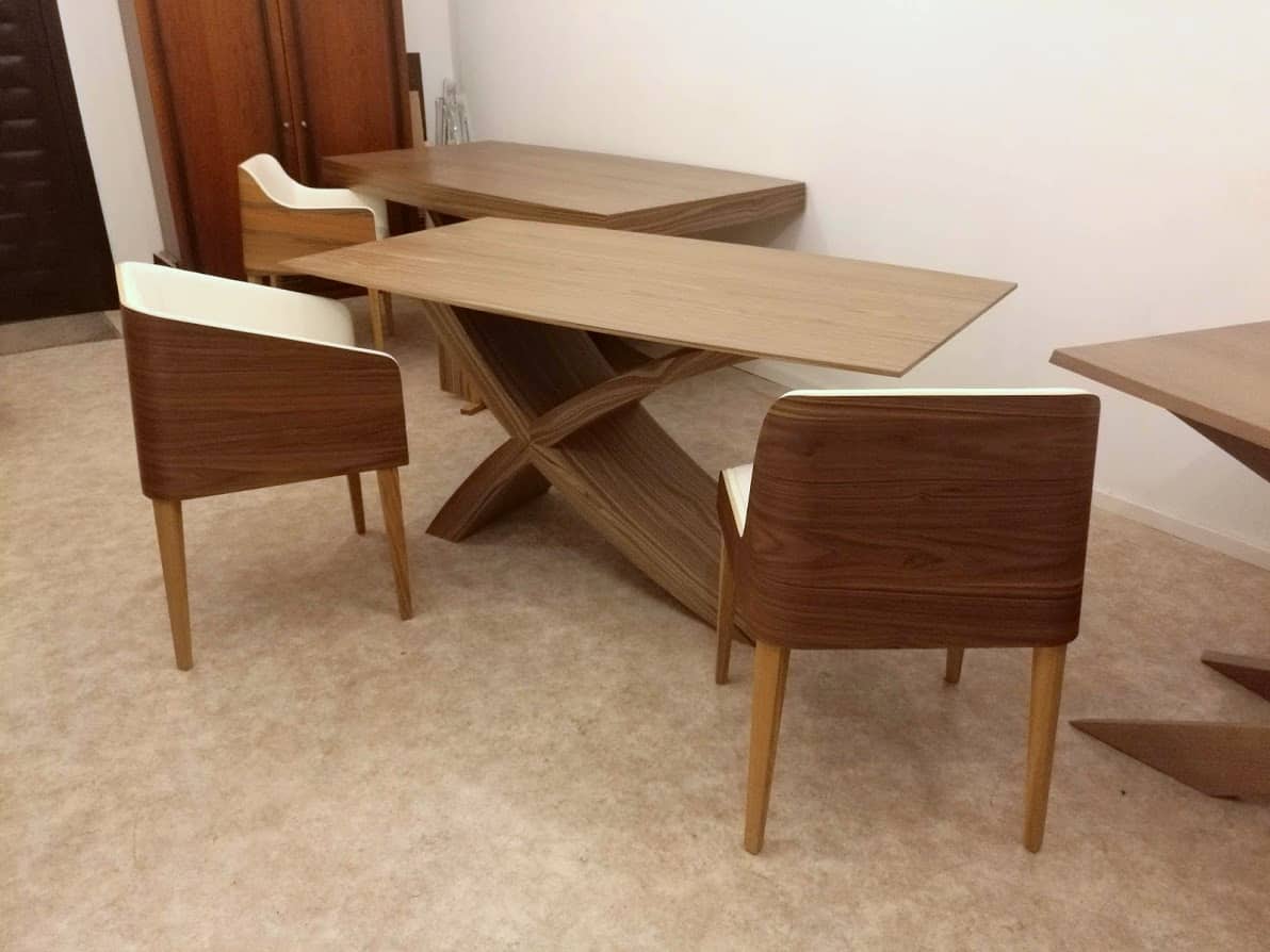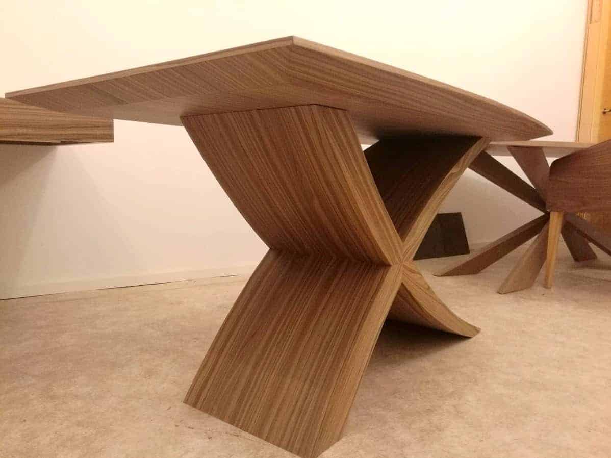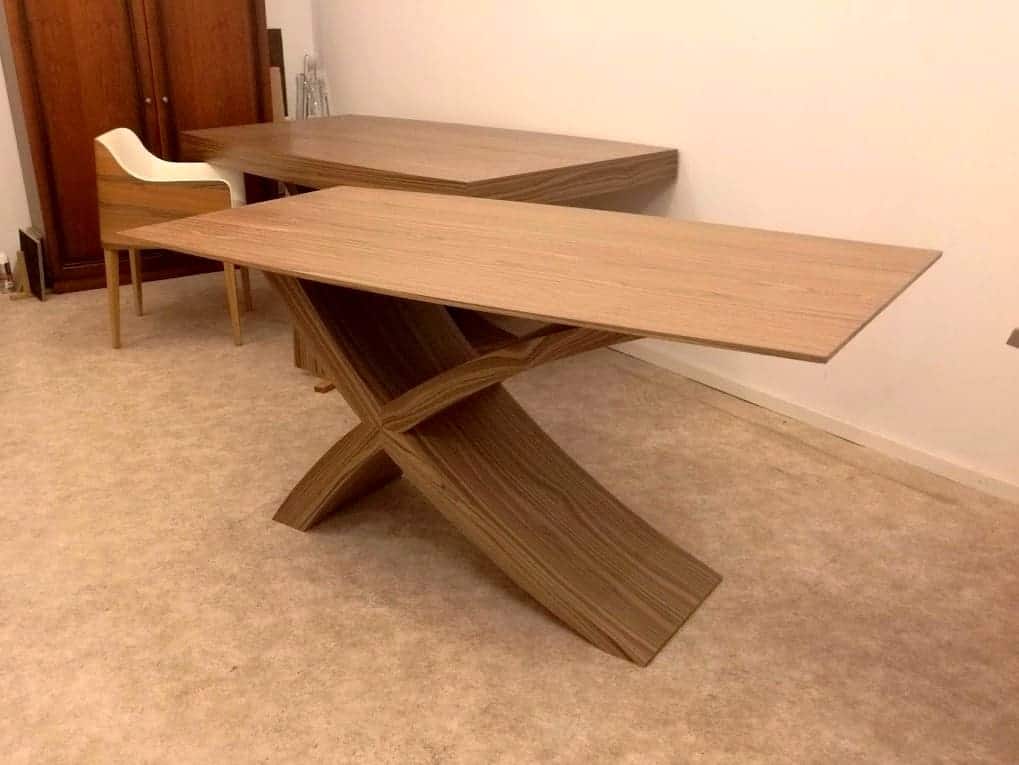 Az általunk gyártott asztalok ellenőrzött erdőgazdálkodásból származó alapanyagokból készülnek – kiváló minőségben, 1988 óta. Az asztalok lábszerkezete merev, erős faszerkezet, az asztallap magja is fából készül, speciális eljárással, hogy kiküszöböljük a vetemedést, repedést. A lap és láb, Alpi többszörkéselt amerikai dió fa fedőréteget kapnak.